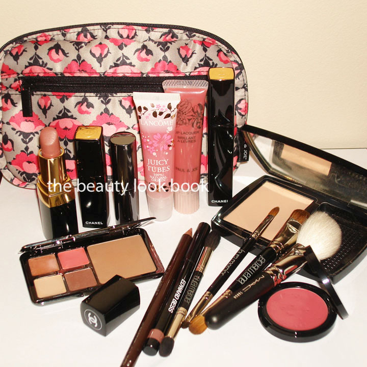 Le Metier Marchesa Card, Chanel Rouge Coco, Chanel Rouge Allure Laque, Chanel Rouge Allure Extrait de Gloss, Edward Bess Lipliner + Compact Rouge, Laura Mercier Mini Brushes, Chantecaille Lip Chic, MAC Mini Face Brush, Chanel Powder Foundation, Paul & Joe Lip Lacquer, Lancome Juicy Tube