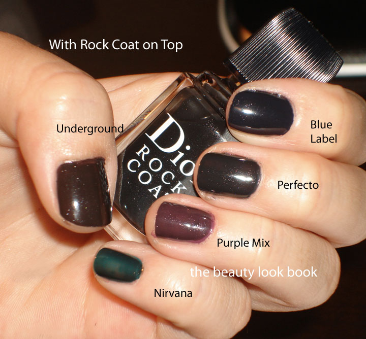 Quick swatches of the new Dior Vernis from their Rock Coat Collection. My own review & thoughts to come later this evening! And because I know everyone is going to ask, Blue Label is darker than Bond Street (comparison to come soon). In the meantime, check out Fashion Polish, Joey’s Space, and TriGirl from The Purse Forum for additional swatches, reviews and thoughts.