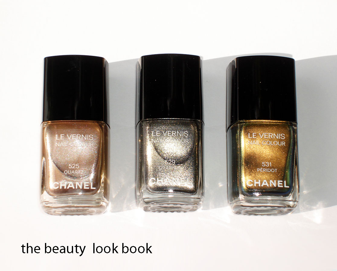 Chanel Fall 2011 has broken my blog break and has also eaten into my savings for a Chanel mini-flap. I am still highly ecstatic. My first feature on the Fall Collection will be on new Le Vernis shades ($25 each). The theme for nails is metallic where light plays a key role in the final result of what you see on the nails. The colors are slightly translucent in texture so you can build intensity with two or more coats. Each shade has a slightly different finish and quality making each color unique.