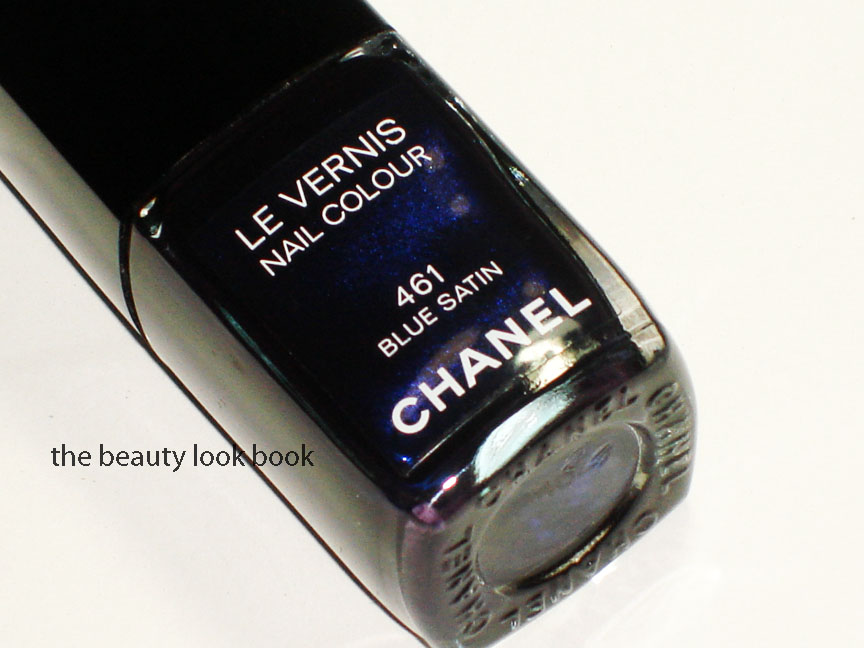 Chanel Blue Satin 461 was originally launched in Spring 2008 (see details on Temptalia here) as a permanent shade. Per Cafe Makeup’s keen eye, it looks it might be making a comeback as seen on the runway at the Fall-Winter 2011-12 Couture Collection at the Grand Palais in Paris, France. It’s a dark navy blue with an iridescent glow in the bottle. On the nails, the shimmer disappears (unless in direct sunlight) and you see a dark glossy deep rich navy. Since it’s mid-summer, I was initially a bit weary of wearing this right now. Thanks to the help of a few tweets from fellow bloggers, I was assured that Blue Satin is one of those shades that is good for any time of year. They were right!