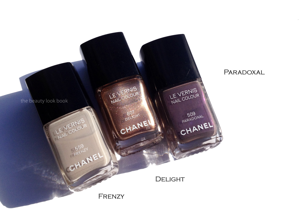 - Chanel Le Vernis shades in Frenzy (here), Delight (here) and Paradoxal (here)