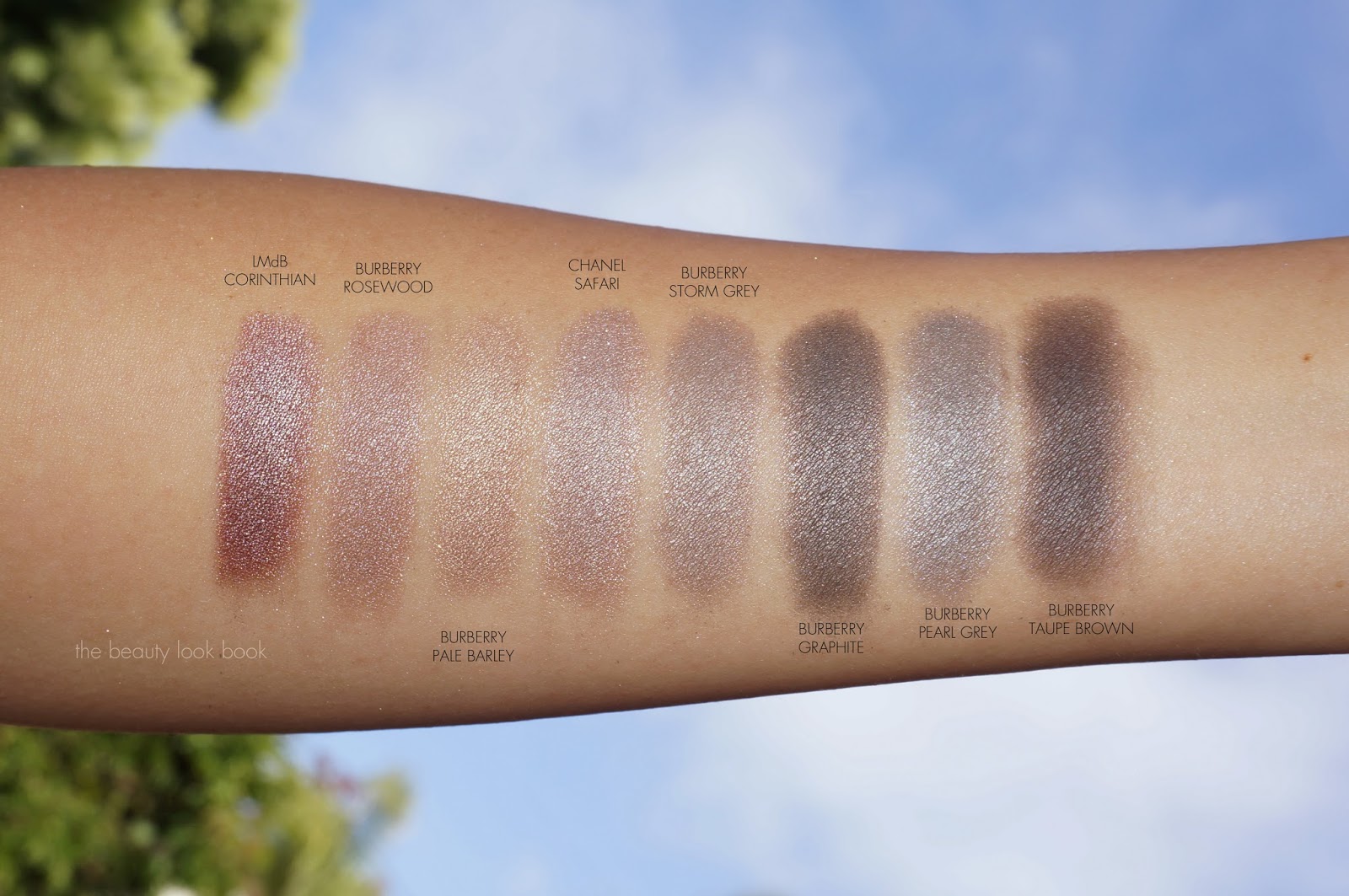 Burberry has released two new single eyeshadows in Storm Grey No. 27 and Graphite No. 28 ($29 each for 2.5g, made in Italy). These weren’t released as part of any full collection but add ons with a recent color feature at Nordstrom. I ordered one online at Nordstrom even though it was listed on backorder for several weeks. (It shipped the next day anyways.) The other shade I ordered from Nordstrom San Francisco. Many thanks to Café Makeup for taking the time out of her busy schedule to e-mail me with a heads up. Otherwise I might have completely missed these. You might find swatches on Gummy Vision and Chic Science helpful for additional reference.