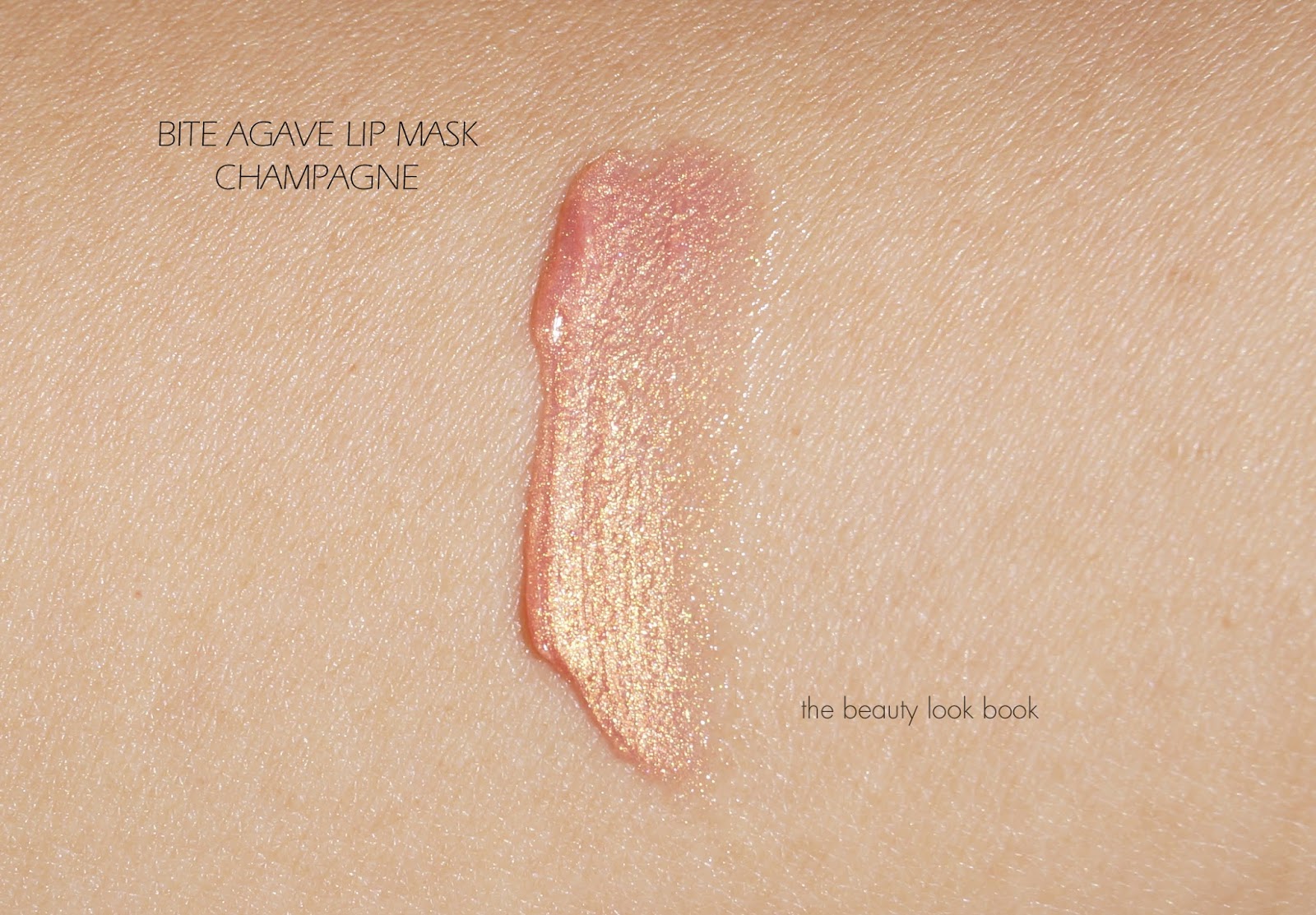 Champagne swatches like a gorgeous gold shimmer similar to MAC Nymphette Lipglass, but it sheers out on the lips to an almost clear tint. The Bite Agave Lip Mask gives the lips a healthy shine but virtually no color.