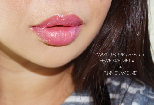 I have two Marc Jacobs Beauty lip products to share today that I’ve been obsessed with for a few weeks now. The Lovemarc Lip Gel in Have We Met? ($30 for 3.6 g / 0.12 oz) is a medium rose pink with a bit of gold shimmer. The formula of the Lovemarc Lip Gel is really nice and smooth. It’s become a favorite lipstick formula of mine, I think they are highly under-rated. The lipsticks are a unique gel formula with a slightly glossy finish. The shades I’ve tested adhere well to my lips and give medium to full coverage. (Other reviews on blog on Role Play, Serevine and Cabaret.) The Lip Gels have a slight vanilla scent but it is very soft and subdued making it wearable for me even though I have a super sensitive nose.
