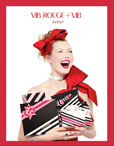 The Sephora VIB Rouge and VIB 20% off promotional event starts this week! For VIB Rouge Members, the event starts today online with promo code GIFTROUGE. It’s valid through November 10, 2014 11:59 PM PST. The promotion will also available in stores. VIB Rouge Members should have received a mailer with the voucher and event details, there is an early-access instore shopping event tonight (the 5th) for VIB Rouge Members but you need to RSVP to your store (hours vary per store).