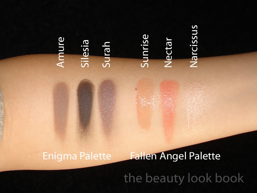 Enigma Palette has a trio of neutral-cool smokey colors. Amure is a matte soft grey-brown, Silesia is a dark smokey grey-brown-black, Surah is a shimmery mauve. All have a soft velvety texture which make these easy to apply and blend together. I was a bit let down by the palette in the sense that it did not look like the promotional photo online. Still the quality is very good and colors are good neutrals for a soft smokey eye – just not very unique.