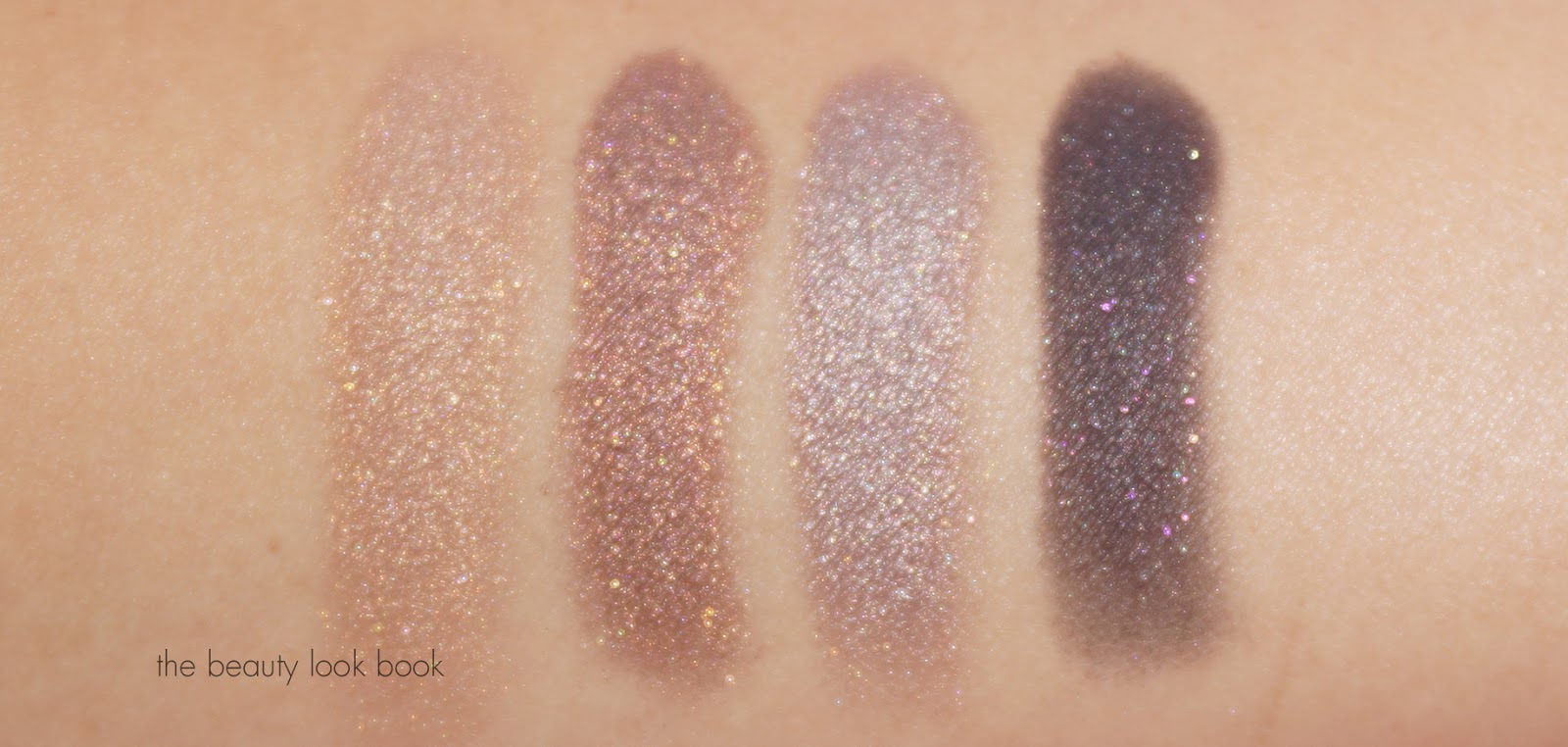 I think you can find similar colors in other brands, quads, palettes and singles but the texture and shimmer is really quite extraordinary. It’s really impossible to capture how complex the shimmers are in swatches but I had one that was a bit blurry that ended up showing the different pearl particles well. On the eyes it’s not glittery even though there are tiny sparkle particles.