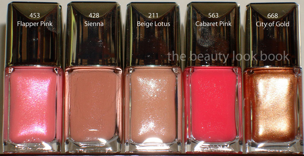 What I ordered left to right: 453 Flapper Pink, 428 Sienna, 211 Beige Lotus, 563 Cabaret Pink, 668 City of Gold (Saks)