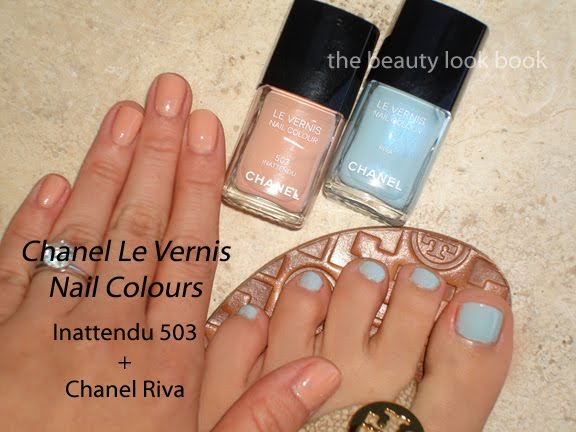 The inspiration from the fashion show, nude pink nails on the hands and blue on the toes. I know most breakdowns list Jade Rose on the fingers, but I decided to go with Inattendu instead for the hands. I stuck with the new Riva on the toes to mimic the models.