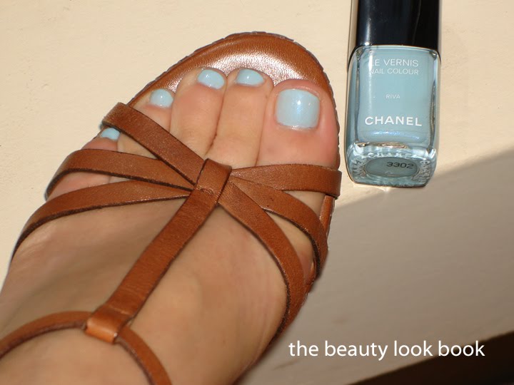 This mani/pedi was from the weekend – right after Thanksgiving when I was dreaming of warm sandy beaches. Living in Southern California, I shouldn’t complain, but I spent part of the extended weekend watching Chanel’s Saint-Tropez Cruise 2010/2011 Fashion Show (yes, a few months late) and couldn’t help but feel envious of the beautiful warm-looking weather. I immediately was inspired to make myself feel resort-like the only way I could by doing a Chanel cruise-inspired mani/pedi.