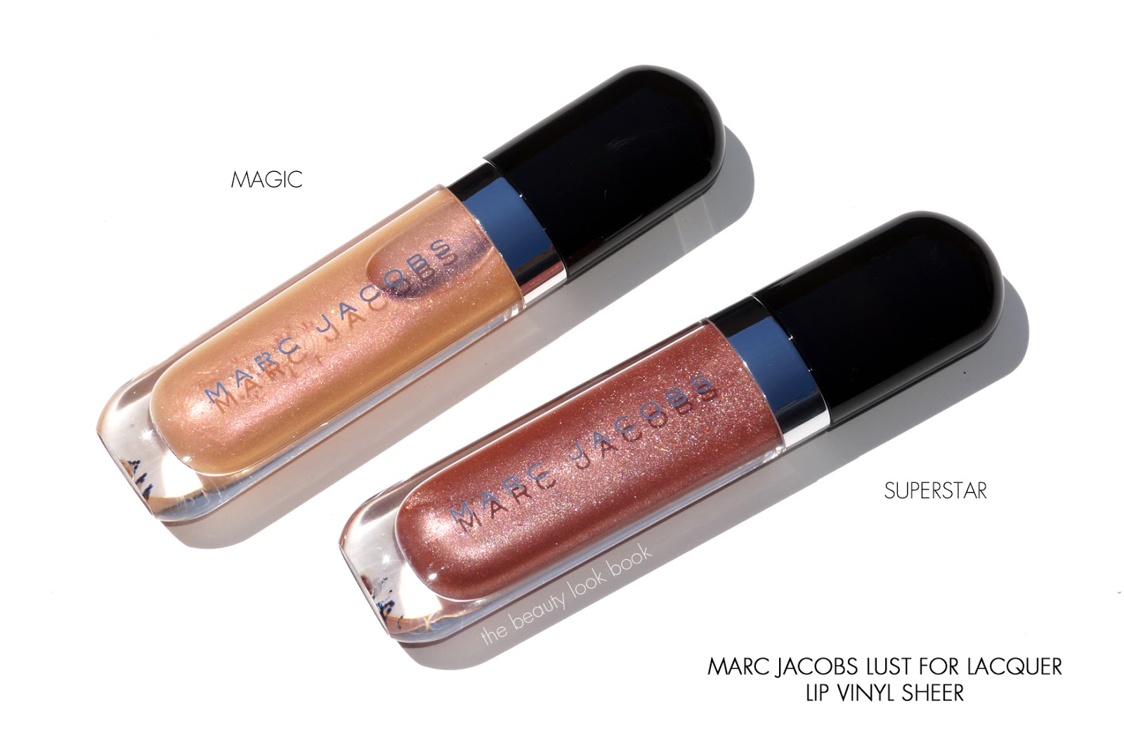 Marc Jacobs Beauty has two new Lust For Lacquer Lip Vinyls (Sheer) in Magic and Superstar ($28 each for 5 ml/0.16 fl oz). Magic is a sheer champagne gold nude shimmer and Superstar is a sparkling mauve pink with silvery shimmers. Both are very sheer like other shades in the same formula (reviews of Kissability, Heart Shaped and Overprotected). In case you haven’t seen the previous reviews and are new to Marc Jacobs lip glosses, the Lip Vinyl Sheers have a flexible sponge tip. There is a soft vanilla-cake scent to these but they have a slight cooling sensation and plump the lips. I found them gentle enough for my sensitive lips. The texture is smooth and shiny.