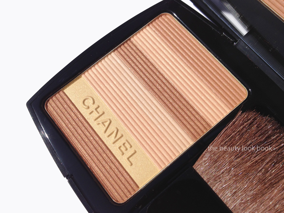 This summer Chanel has continued in the striped-bronzer theme and released two new variations of their Soleil Tan de Chanel bronzers in a luminous powder compact. The two colors this year are Sable Beige 907 and Sable Rose 917 ($60 for 15g/0.53 oz, both limited edition). Both shades contain 7 stripes of color each although to my eye, it appears that there are some repeats of colors within each pattern. The finish of both of these are subtle with a finely milled shimmer. It makes the skin glow without having too much shimmer. I recommend testing on the face in person since swatching on the hand or arm will not give you the same effect as on the face. I had similar thoughts/experiences to Product Doctor. The finish of these are softer than previous years. I also did not find these to be the typical bronzer, but rather a more luminous glow blush/highlighter – minus the frost or shimmer. This year’s releases are more glowy and sandy/beige than last year’s which I found more brown/bronzey.